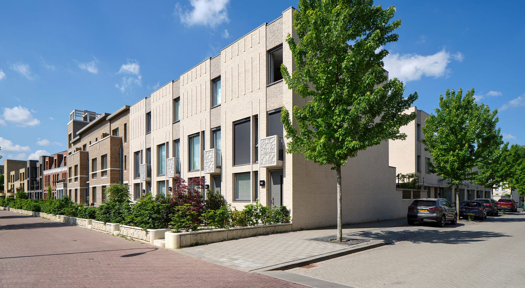 De Groene Loper is een jong leefgebied, maar het is er nu al verrassend levendig en gevarieerd. Direct langs de statige bomenlaan staan nieuwe stadswoningen en herenhuizen van minimaal drie verdiepingen met karakteristieke bakstenen gevels. Allemaal anders, maar bij elkaar een vertrouwde eenheid.